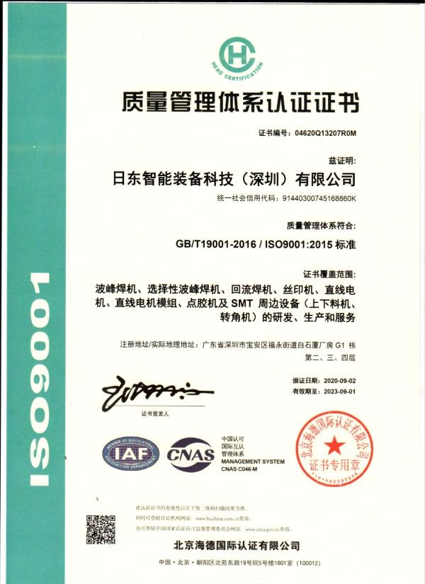 今后日東科技將一如既往的嚴(yán)格執(zhí)行質(zhì)量管理體系要求,遵循“專業(yè)領(lǐng)先 精益求精 增值服務(wù)”的質(zhì)量方針,以精益求精的態(tài)度為客戶提供專業(yè)的產(chǎn)品與服務(wù);通過不斷提升與改進(jìn),滿足顧客需求的同時,并提供高效與增值的服務(wù)。