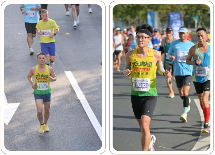 在比賽當(dāng)天,廣工大的隊(duì)員們穿著統(tǒng)一的日東科技定制運(yùn)動(dòng)服,在陽(yáng)光明媚的早晨出發(fā)。他們用腳步丈量城市的每一寸土地,呼吸著清新的空氣,享受運(yùn)動(dòng)帶來(lái)的快樂(lè)!沿途觀眾的熱情加油聲此起彼伏,為選手們注入了源源不斷的動(dòng)力。最終,廣工大所有隊(duì)員都成功完成了全程的比賽,以實(shí)際行動(dòng)詮釋了什么叫堅(jiān)持到底,其中,黃文龍選手以2:45:53的凈成績(jī)跑完全程,在17195名參賽者中獲得了排名101的好成績(jī)!