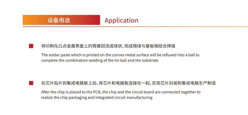 1、將印刷在凸點金屬表面上的錫膏回流成球狀,完成錫球與基板相結合焊接;